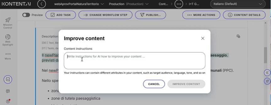 - Kontent.ai-Assistant-KI zur Verbesserung von Texten direkt im CMS.